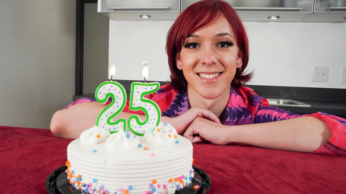 After a long time, the one and only Patrice Hepburn is back on Grooby Girls - right on time to celebrate our 25th Anniversary with us in a smoking hot special produced by Radius Dark! After she wishes Grooby a very Happy Birthday and blows out the candles, Patrice strips down and gets her cock rock-hard for you! Watch her stroking it until she shoots a big load! Amazing as always!